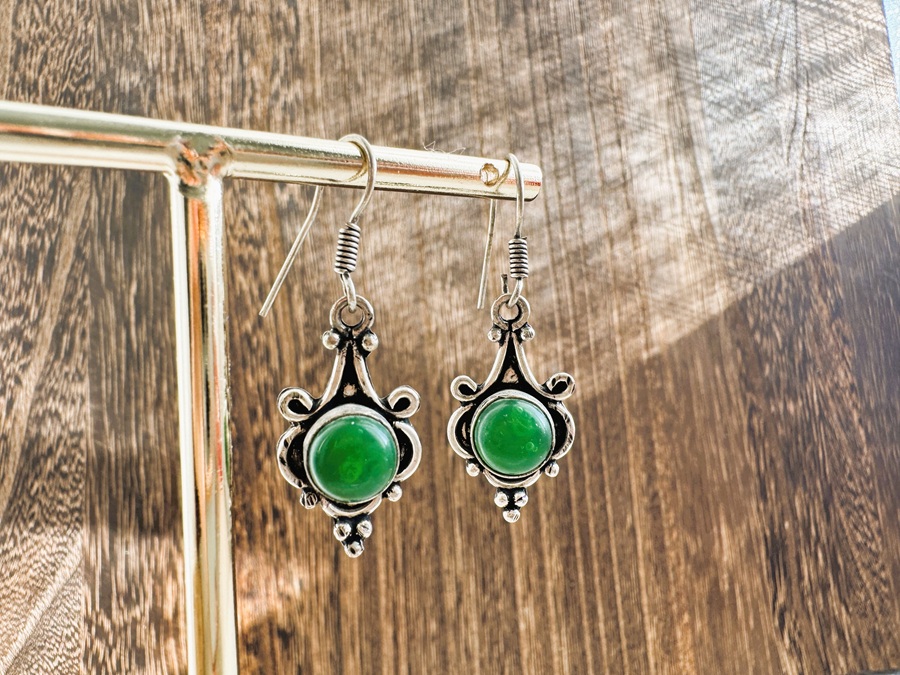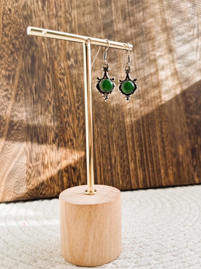 Pendientes de bisutería adquiridos en pequeñas tiendas locales de la India. Diseños de inspiración tradicional, con motivos decorativos y detalles centrales en distintos colores.