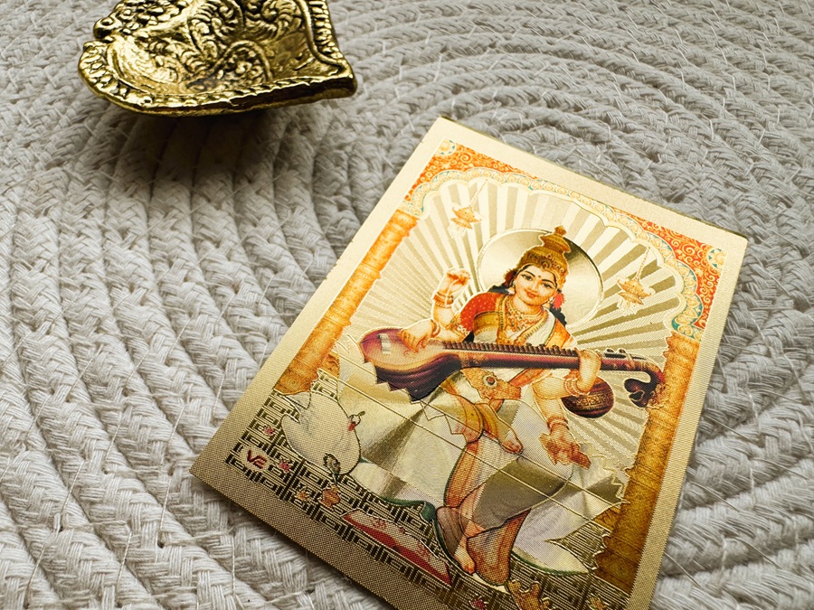 Estampita adhesiva, de color dorado brillante y relieve. El tamaño es de 6×8,5 cm. Es adhesiva para que puedas pegarla donde quieras.